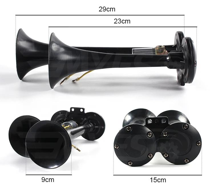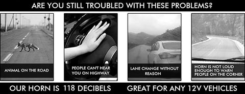 - FIT 12 VOLT VEHICLE】This dual trumpets air horn works on any 12V system vehicles,fit most cars,SUV, Motorcycle, Yacht, Boat, off Road Vehicle, Buses ,easy to install