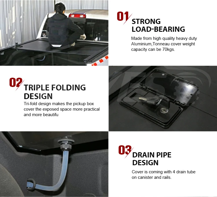 - EXTRA TOUGH | Get a cover that’s going to last This tri-fold truck bed cover has a tear-resistant, double-sided vinyl fabric that sits on top of a corrosion-resistant aluminum frame to withstand daily wear and tear while keeping your cargo protected