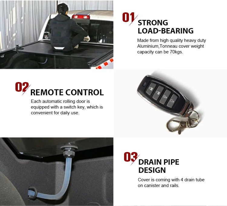 Anti-theft protection:the locking design allows one finger to release and open, and automatically locks when the cover is closed. The electric roller shutter cover can be operated by the remote key buckle with one press of the button, and is automatically locked when the cover is closed. The hard board is scratch resistant and provides maximum anti-theft protection.